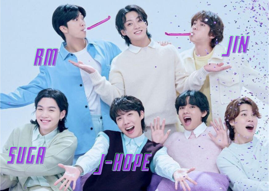 BTS (Bangtan Sonyeondan) é um grupo sul coreano formado pelos membros RM, JIN, SUGA, J-HOPE, Jimin, V e Jung Kook.